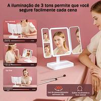 LEDs de alta precisão com CRI acima de 90%: Luzes LED de alta precisão reproduzem a cor real da sua maquiagem, proporcionando aplicação sem erros.