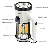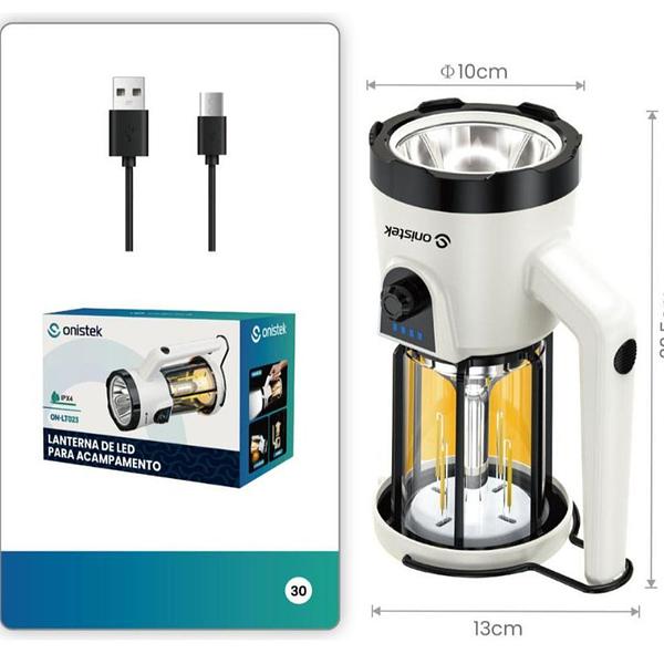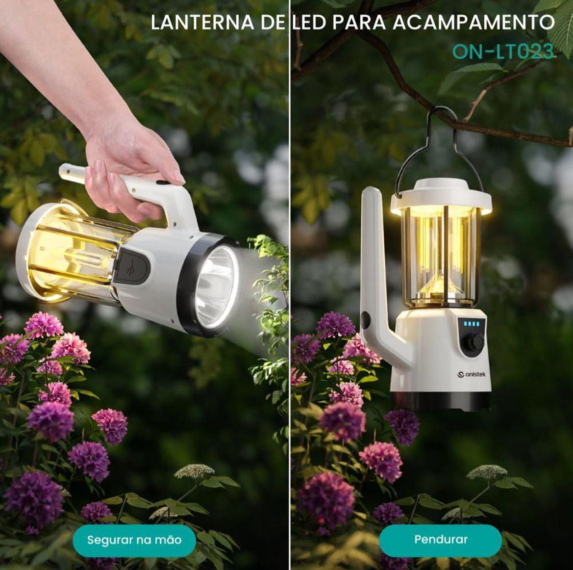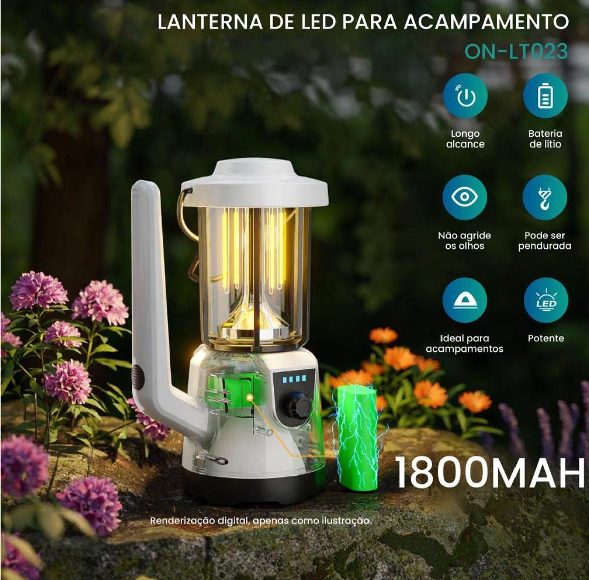 Com LED de alta intensidade que não agride os olhos, garante um longo alcance de iluminação, proporcionando visibilidade mesmo nos ambientes mais escuros. Sua bateria de lítio recarregável de 1800mAh garante horas de uso contínuo, e seu design permite que seja facilmente pendurada, oferecendo mais versatilidade e conforto em suas aventuras em áreas externas.