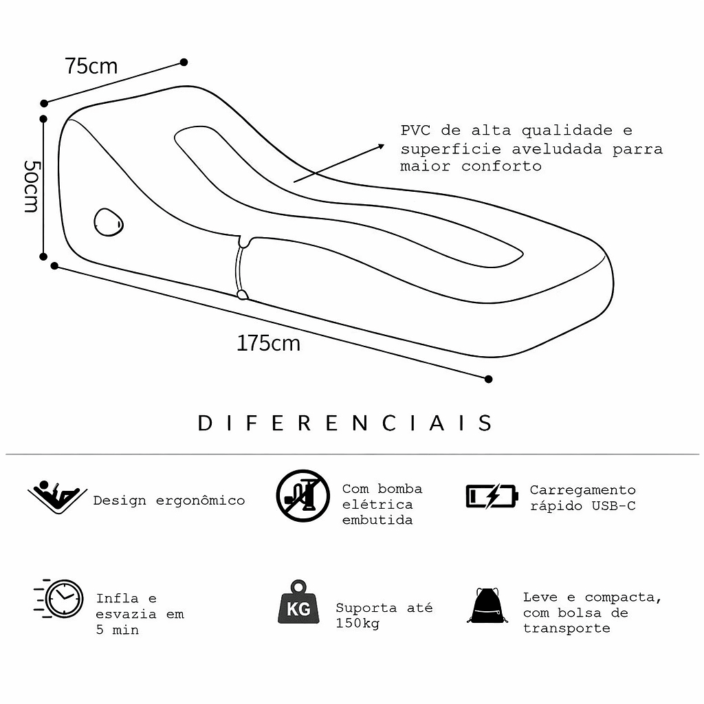 Poltrona Inflável Automatica Chaise Lounge Sofá Preguiçoso 150KG