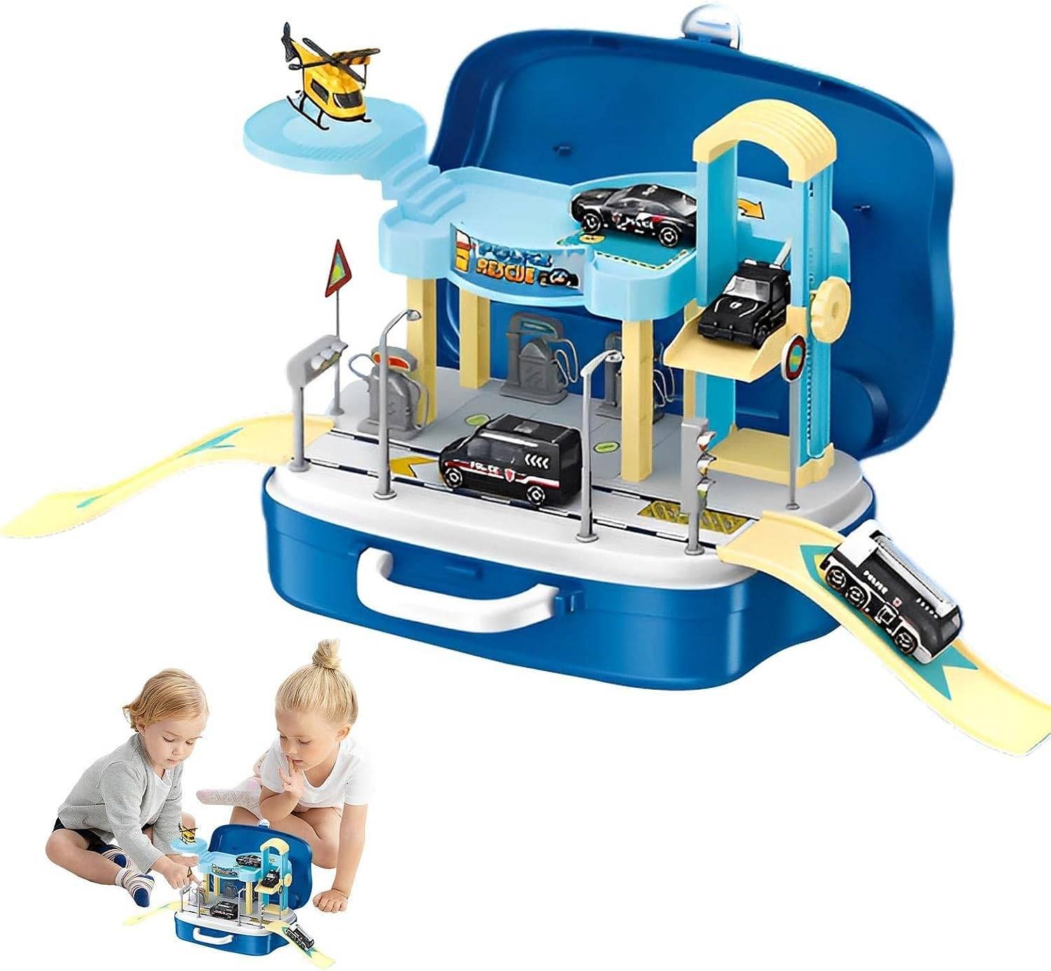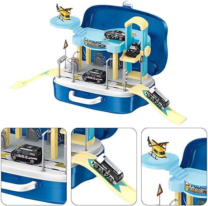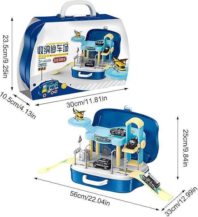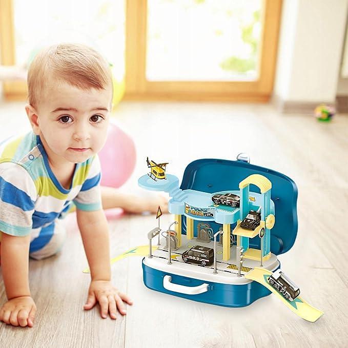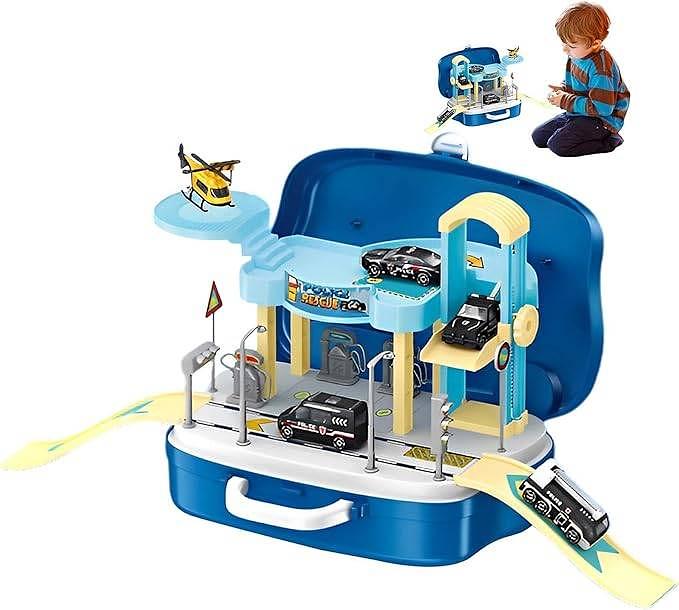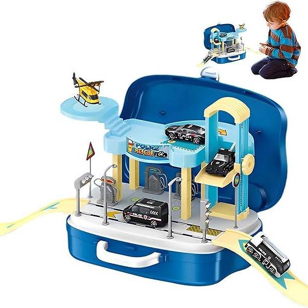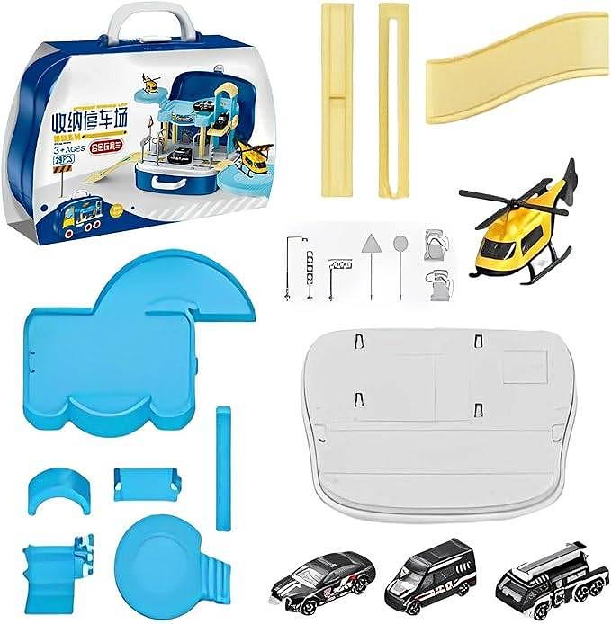 Maleta de Brinquedos 29pç Carrinho Policia Helicóptero Pista