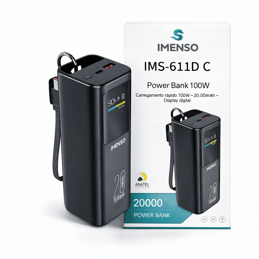 O item é um carregador portátil (Power Bank) da marca Imenso, modelo IMS-611D C.