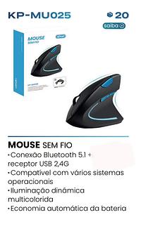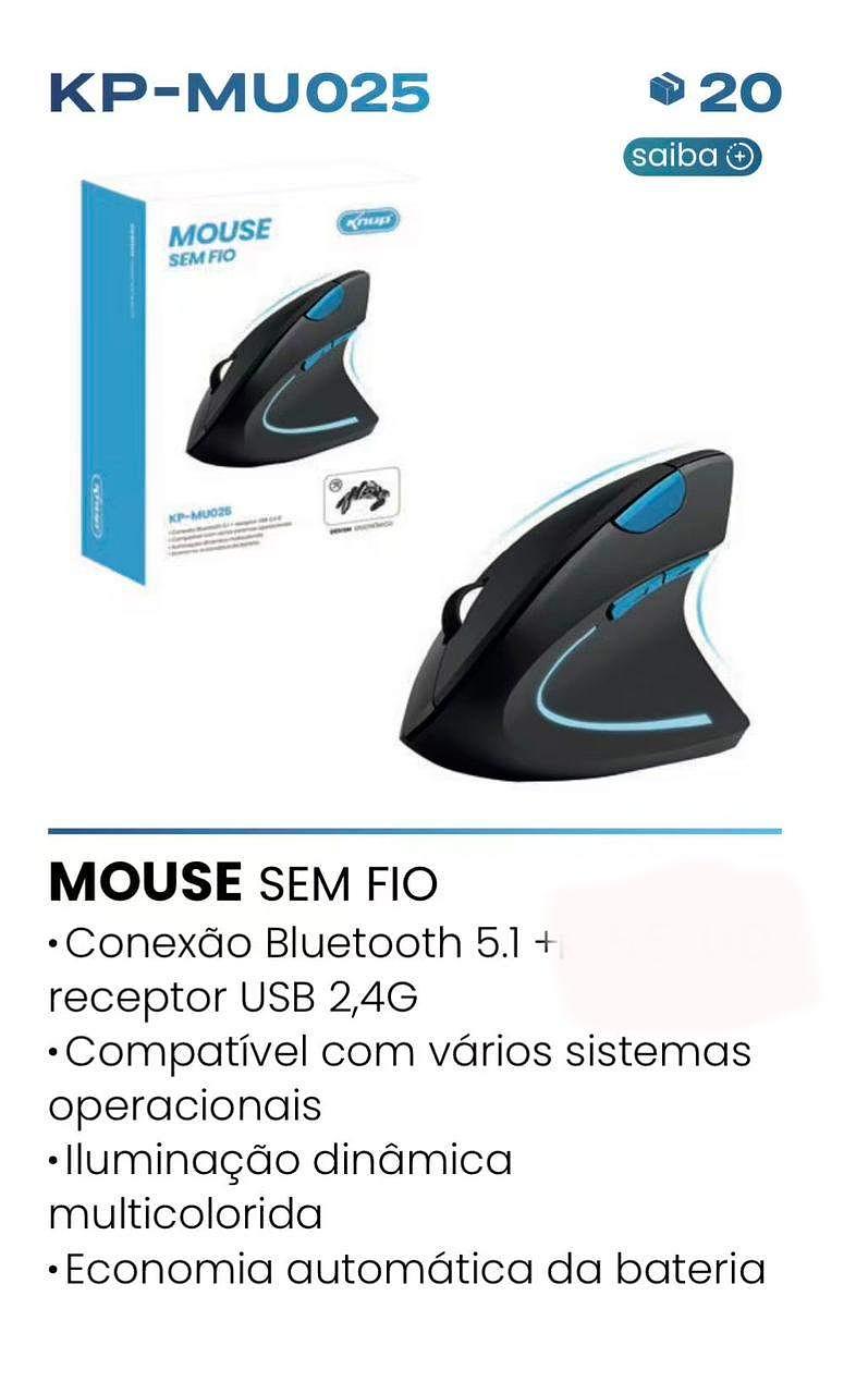 MOUSE SEM FIO* Conexão Bluetooth 5.1 +receptor USB 2,4G* Compatível com vários sistemas operacionais* lluminação dinâmica multicolorida* Economia automática da bateria
