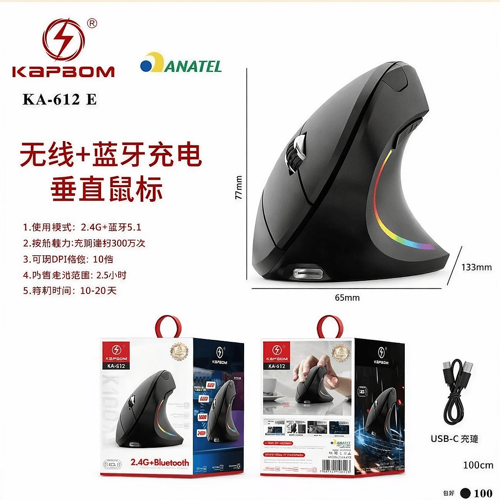 MOUSE SEM FIO* Conexão Bluetooth 5.1 +receptor USB 2,4G* Compatível com vários sistemas operacionais* lluminação dinâmica multicolorida* Economia automática da bateria