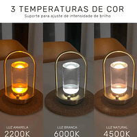 Equipada com 3 modos de iluminação, você pode escolher entre luz suave para relaxar, luz intermediária para leitura ou luz mais intensa para estudos e atividades detalhadas. A luminária conta com bateria interna recarregável, garantindo liberdade para usar em qualquer lugar sem depender de fios.