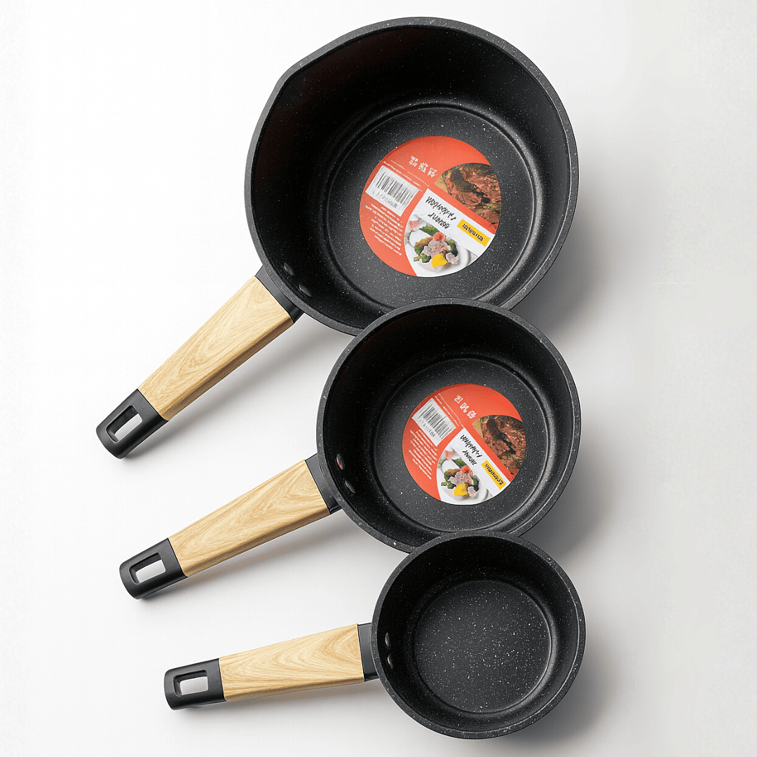 Tamanhos versáteis: a panela de 16 cm é perfeita para molhos, ovos e pequenos acompanhamentos; a de 18 cm atende bem porções médias ou preparo de 1-2 pessoas; e a de 20 cm dá conta de refogados, massas ou pratos para família.