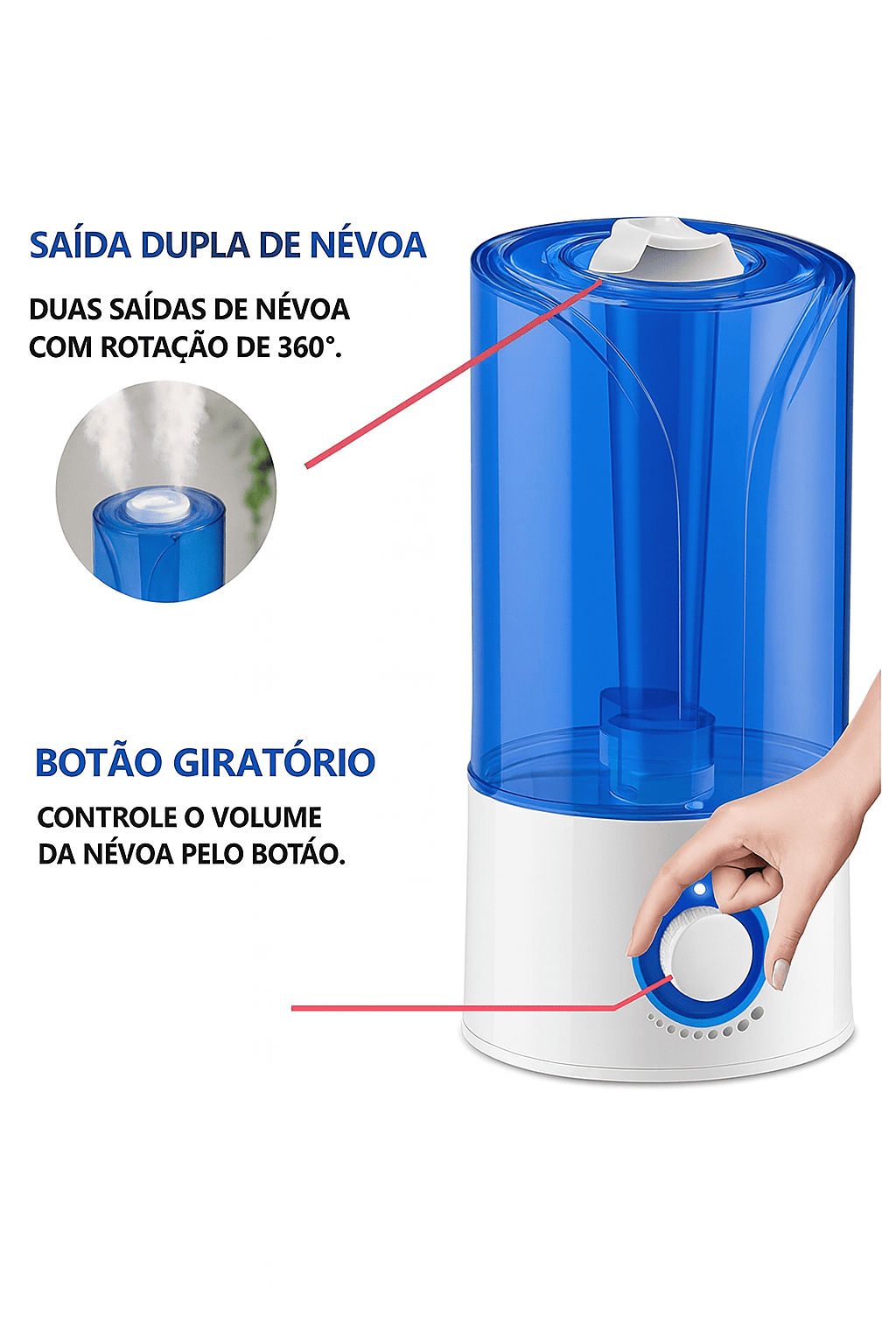 • Ideal para ambientes com baixa umidade: Umidifica também ambientes climatizados com ar condicionado;