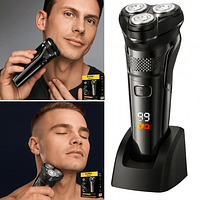 Barbeador Elétrico Profissional B-MAX BM-C053 – 3 Lâminas, Resistente à Água, Display LCD e Carregamento USB
