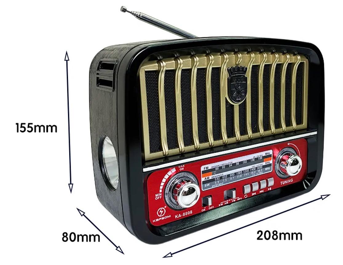 Rádio Portátil Retrô FM AM SW Bluetooth USB mp3 Este modelo funciona ligado na tomada direto mas também já tem bateria interna para levar para qualquer lugar que quiser.