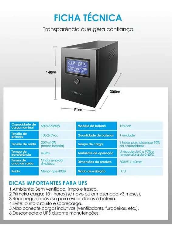 - Ambiente de operação: Umidade de 0 a 90% e temperatura de 0-40°C