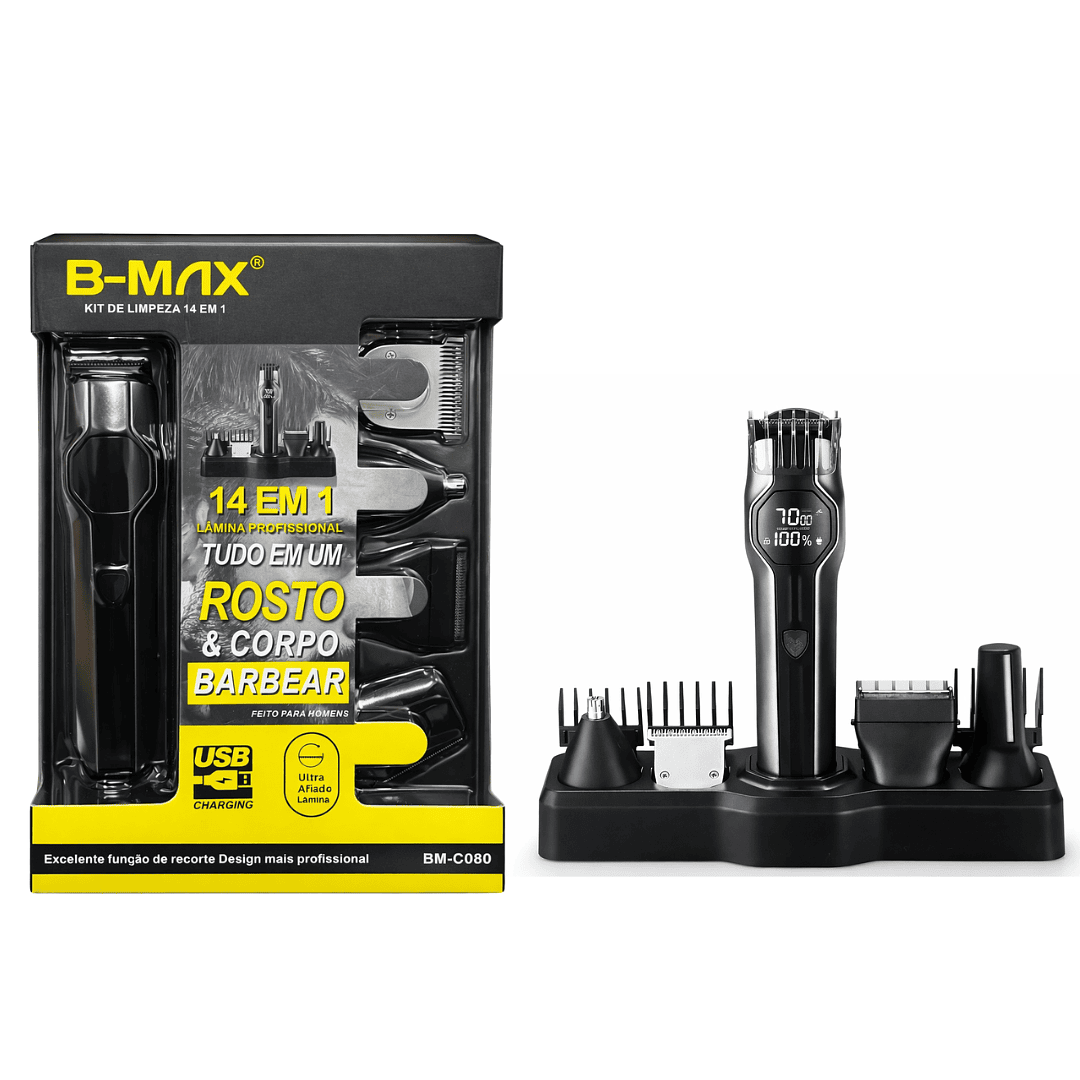 Kit Máquina de Cortar Cabelo Rosto Corpo e Barba 14 em 1