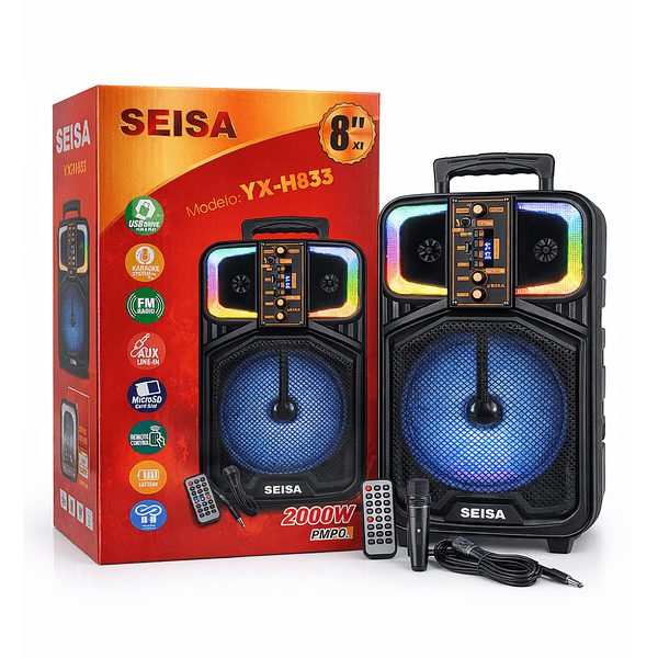 A YX-H381 é uma caixa de som portátil Bluetooth equipada com microfone embutido e iluminação LED dinâmica com 8 efeitos. Compacta e potente, é ideal para festas, uso em casa ou atividades ao ar livre. Reproduz músicas via Bluetooth, cartão TF e USB, oferecendo versatilidade e som de qualidade.