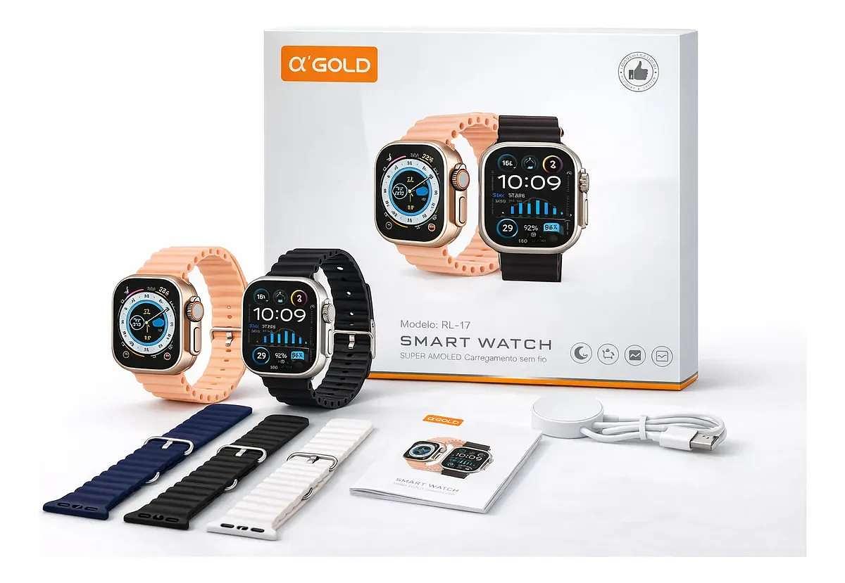 Smartwatch RL17 49mm Tela AMOLED Tecnologia, estilo e praticidade no seu pulso! O Smartwatch RL17 possui design moderno estilo Ultra, tela grande AMOLED e diversas funções inteligentes para acompanhar seu dia a dia. Ideal para quem quer monitorar a saúde, receber notificações e fazer ligações direto pelo relógio.