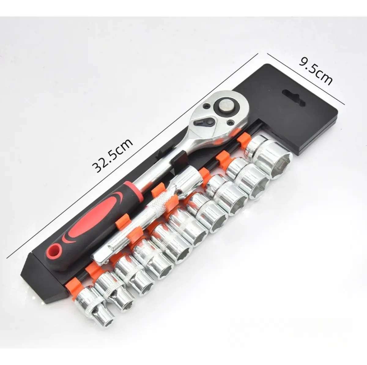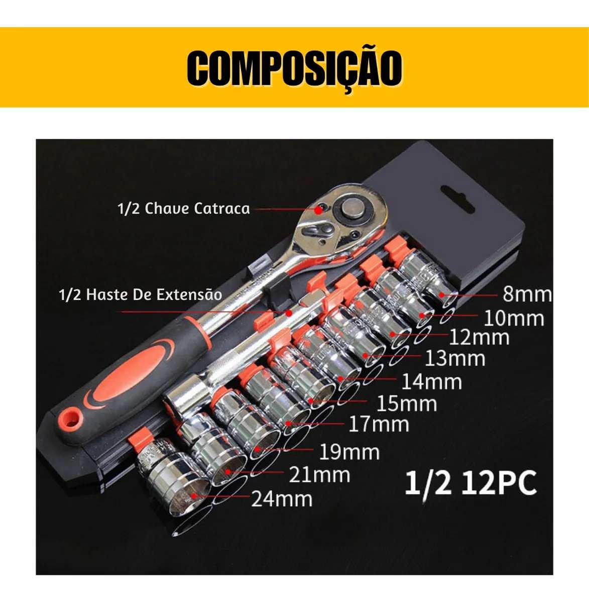 Fabricado com materiais resistentes, o conjunto garante durabilidade e longa vida útil, além de ser fácil de manusear. O formato sextavado dos soquetes proporciona maior aderência ao parafuso, evitando escorregamentos e danos. A medida de 1/2" indica que é compatível com chaves de 1/2", uma das mais comuns em ferramentas de trabalho pesado.