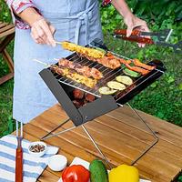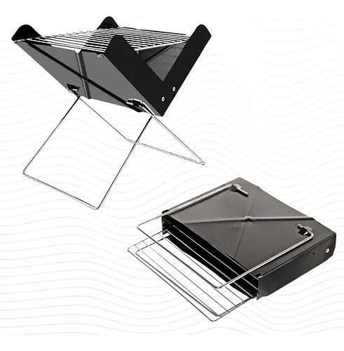 Abra os pés dobráveis da churrasqueira.
