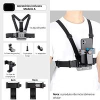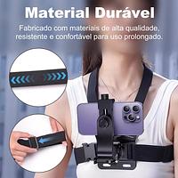 Montagem Fácil: Vem com suportes e acessórios que permitem a montagem rápida e segura de sua câmera ou celular no suporte de peito.