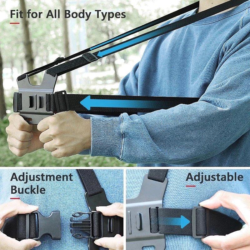 Versatilidade: Suporte de peito ajustável e expansível para câmeras de ação, celulares e câmeras compactas, adequado para atividades ao ar livre como caminhadas, escaladas, ciclismo e muito mais.