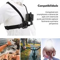 Compatibilidade Universal: Compatível com a maioria das câmeras de ação, celulares e câmeras compactas disponíveis no mercado, graças ao seu sistema de montagem ajustável.