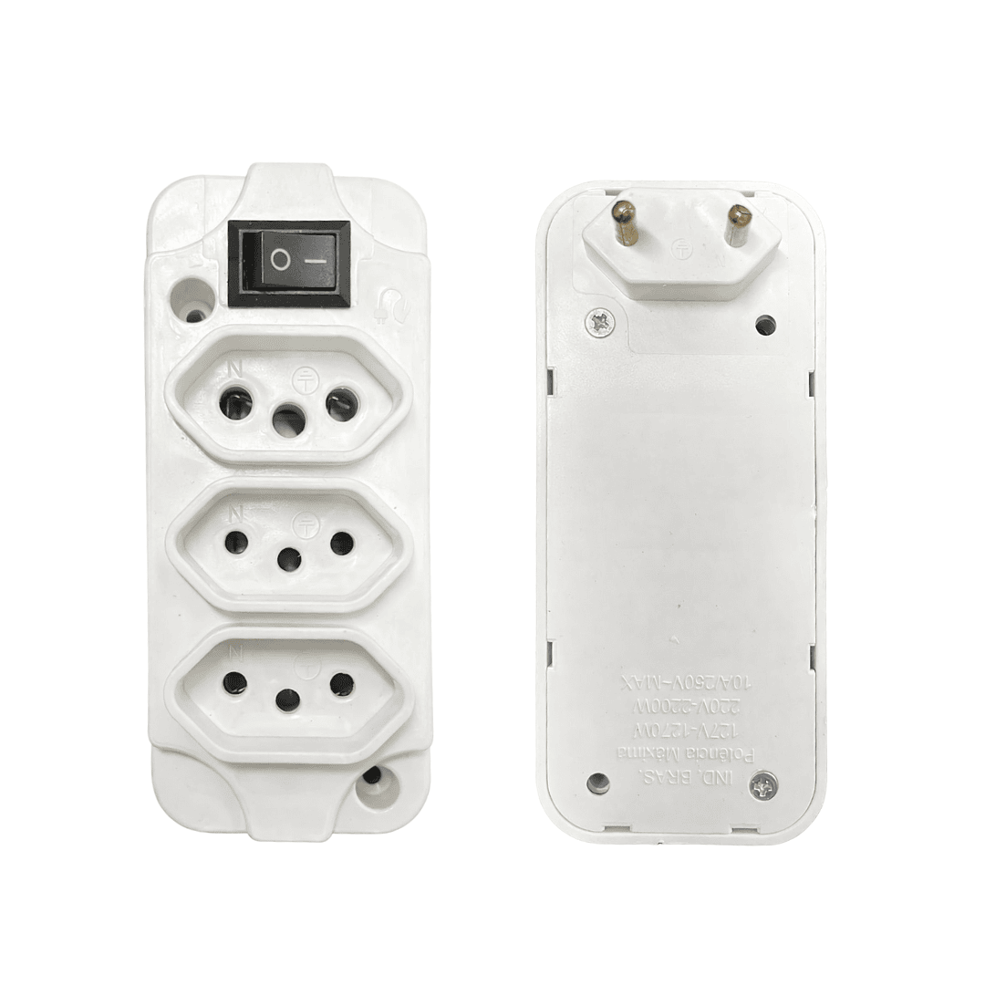 Adaptador de tomada triplo (benjamim) com Botão liga/desliga.
