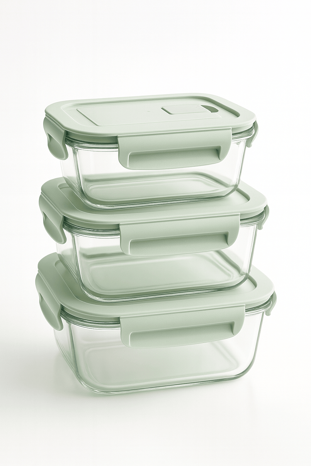 Kit 3 potes Herméticos de vidro Quadrado Quente ou Frio (VARIADOS)
