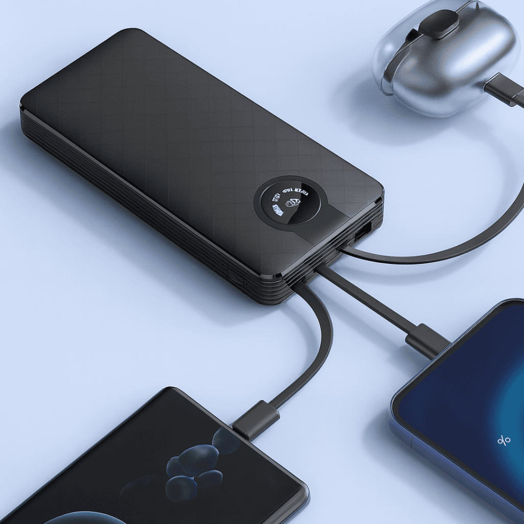 Tenha em suas mãos o poder de permanecer conectado o tempo todo, com o Power Bank 4 em 1 com cabos acoplados. Nunca mais deixe a falta de bateria atrapalhar seu dia-a-dia, seja no trabalho, em viagens ou em momentos de lazer.