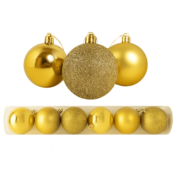 Bolas de Natal 8cm tubo com 6pç Glitter/Fosca/Lisa