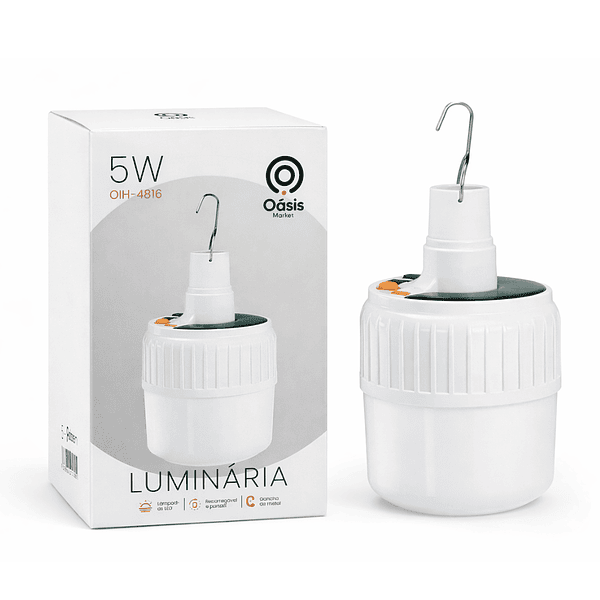 Luminária Portátil Led Recarregável + Placa de Energia Solar 5W