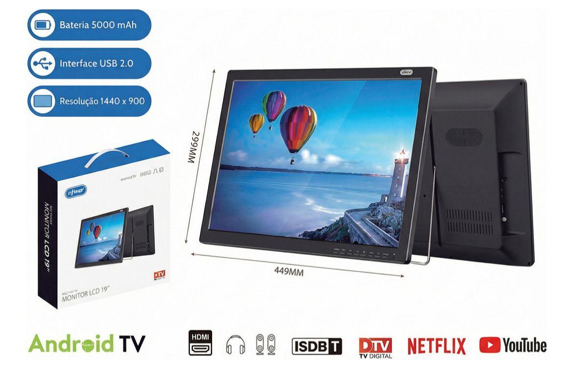 Conta com wi-fi.Possui conexão HDMI.Equipado com conexão USB.Dimensões: 50cm de largura, 30cm de altura e 3.5cm de profundidade