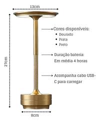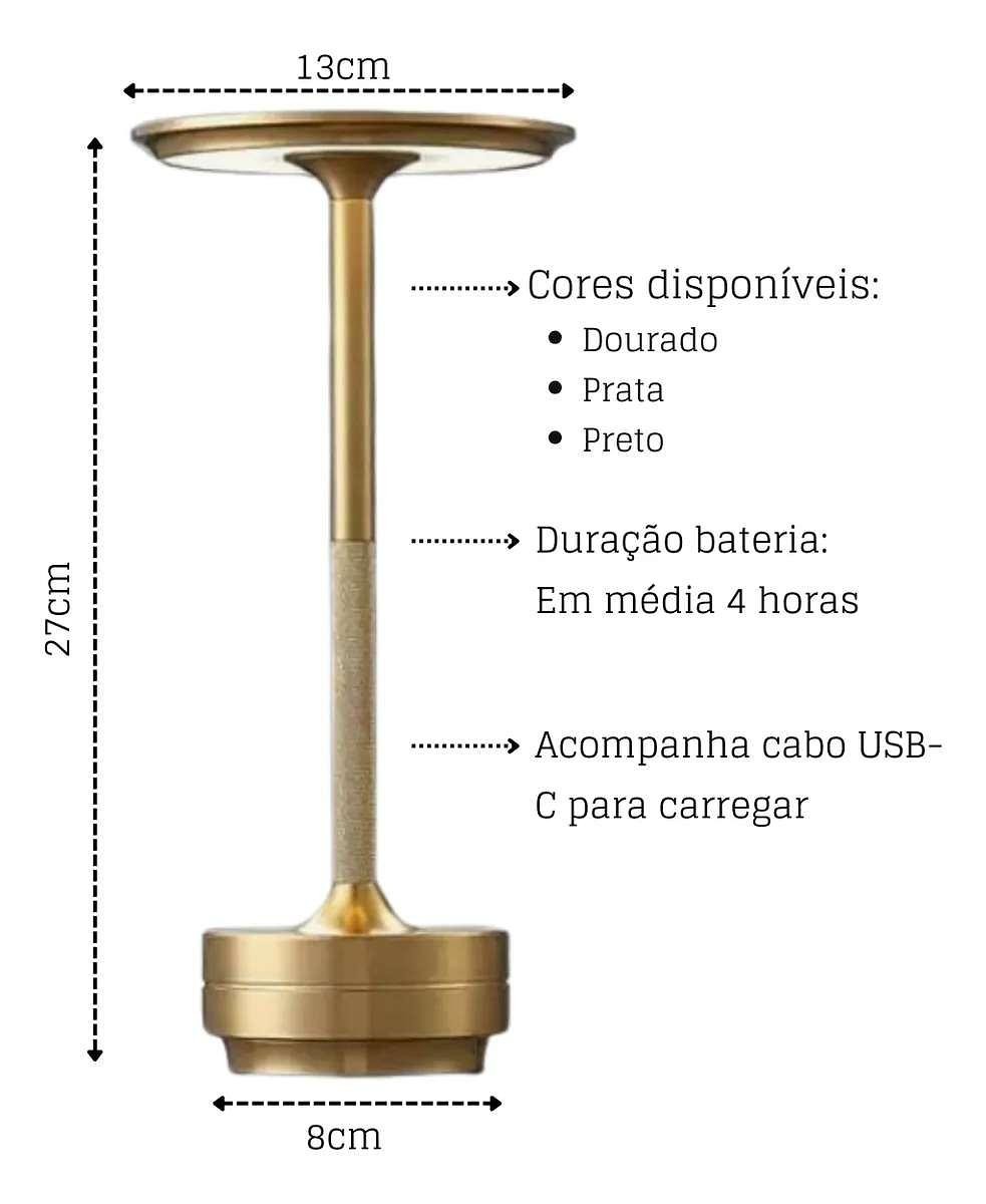 Luminária Abajur Moderna Sem Fio Recarregável Com Dimmer Led