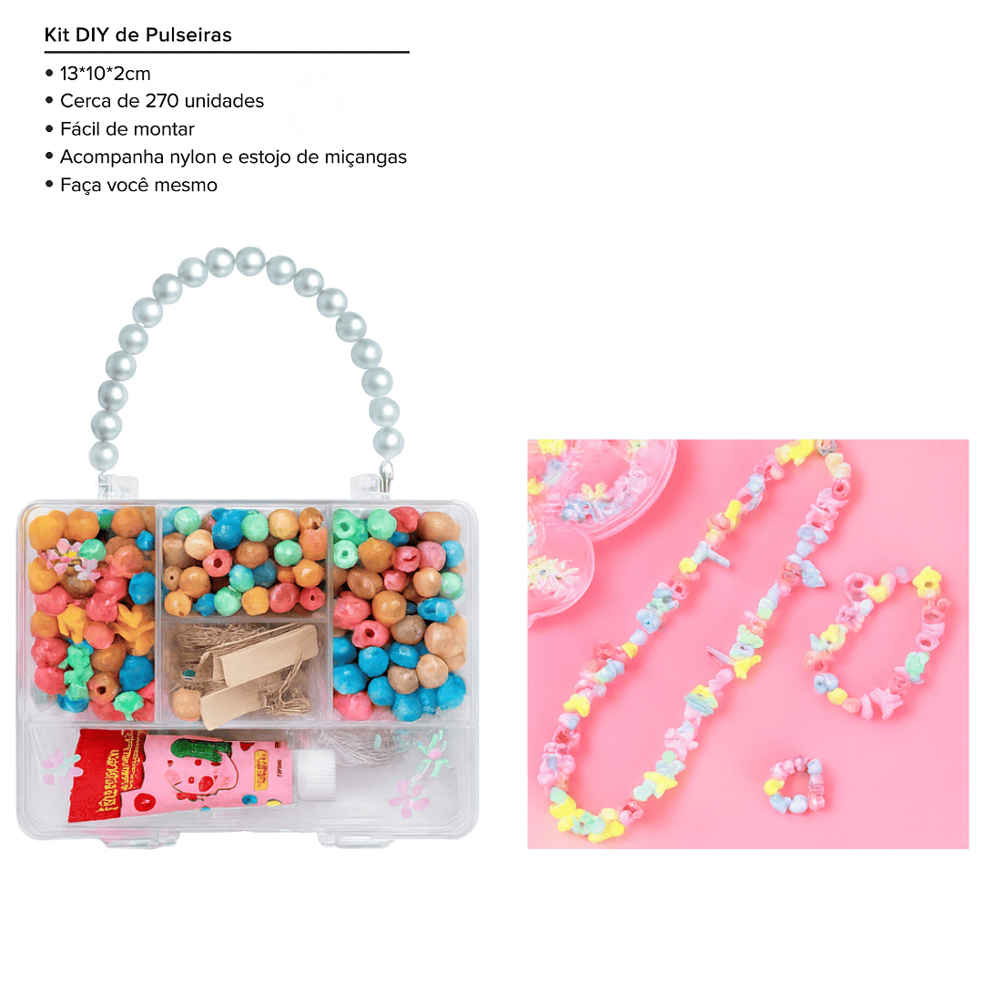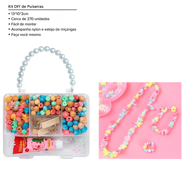 Kit DIY Pulseiras de Miçangas 5 Quadrados + Fio de Nylon E Cola