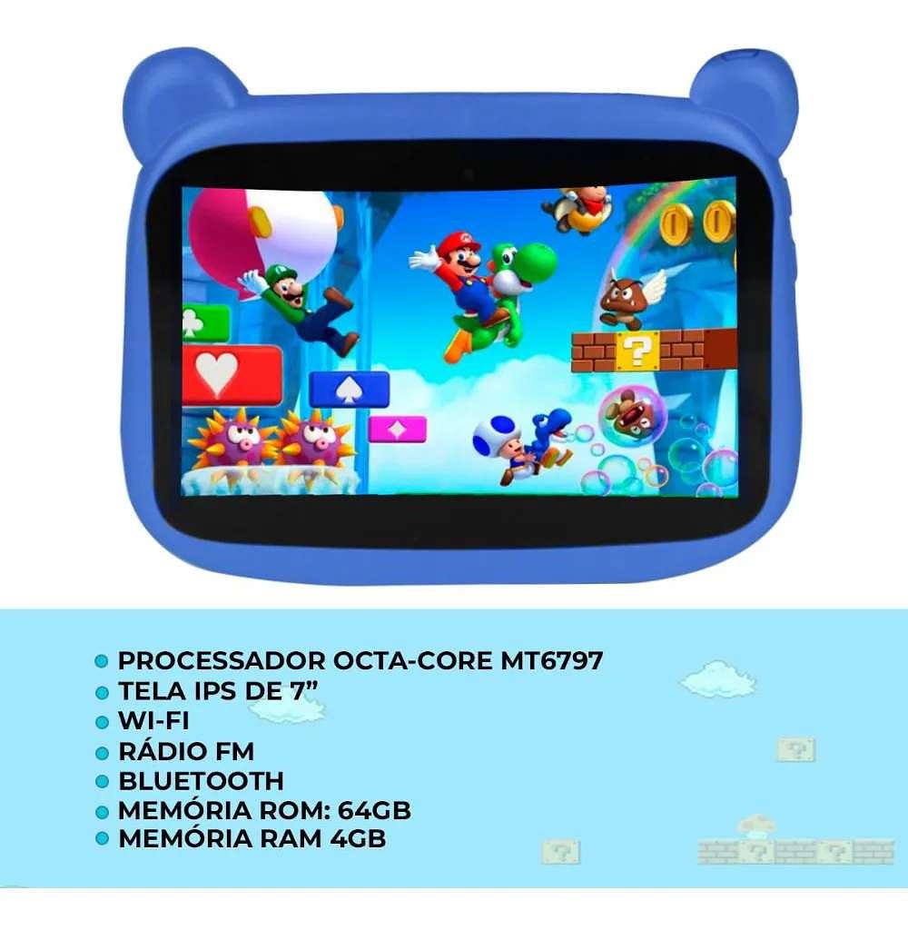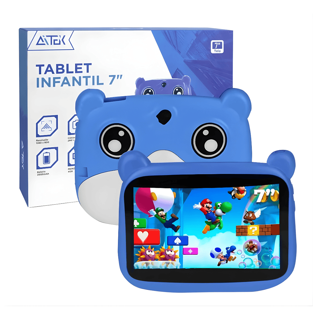 Presenteie seu pequeno com tecnologia, diversão e segurança! O Tablet Infantil com 4GB de RAM e 128GB de armazenamento foi desenvolvido especialmente para crianças, combinando desempenho, conteúdo educativo e design encantador com capa temática de Cachorrinho.